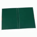 Porta menú elaborado en cuero símil. Parte interna: contiene 2 compartimientos con láminas transparentes. Parte externa: adornado con manta incaica. Dimensiones abierto: 14x34cm.