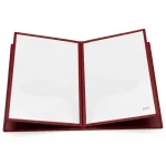 Porta menú elaborado en cuero símil. Parte interna: contiene 4 compartimientos con láminas transparentes. Parte externa: adornado con manta incaica. Dimensiones abierto: 14x34cm.
