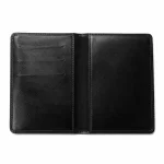 Porta pasaporte elaborado en cuero símil. Interior izquierdo: un compartimiento grande y sección para 3 tarjetas de visita o de crédito. Interior derecho: compartimiento para el pasaporte. Medidas abierto: 21x14cm.